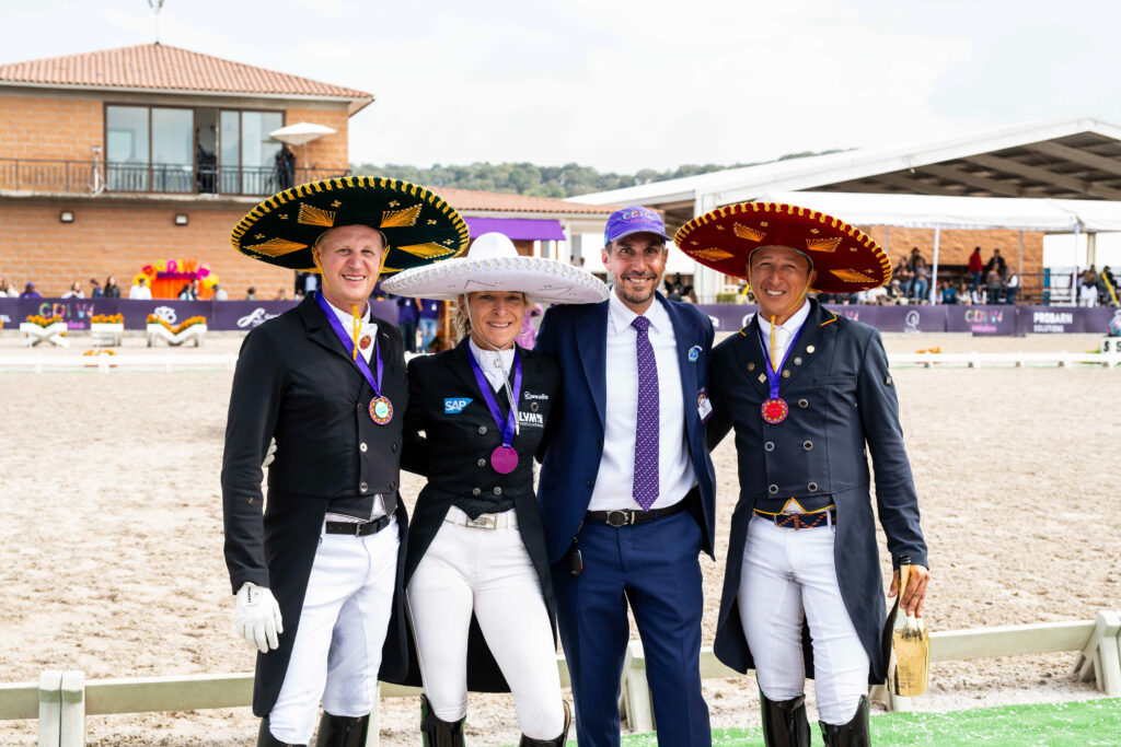 FEI Dressage World Cup of Mexico City 2025 top three placed riders: 3rd: Julio Mendoza Loor (ECU), 1st: Matthias Alexander Rath (GER), 2nd: Ingrid Klimke (GER) – on the 9th of November 2025, Mexico City, Mexico. PC: (C) Lukasz Kowalski